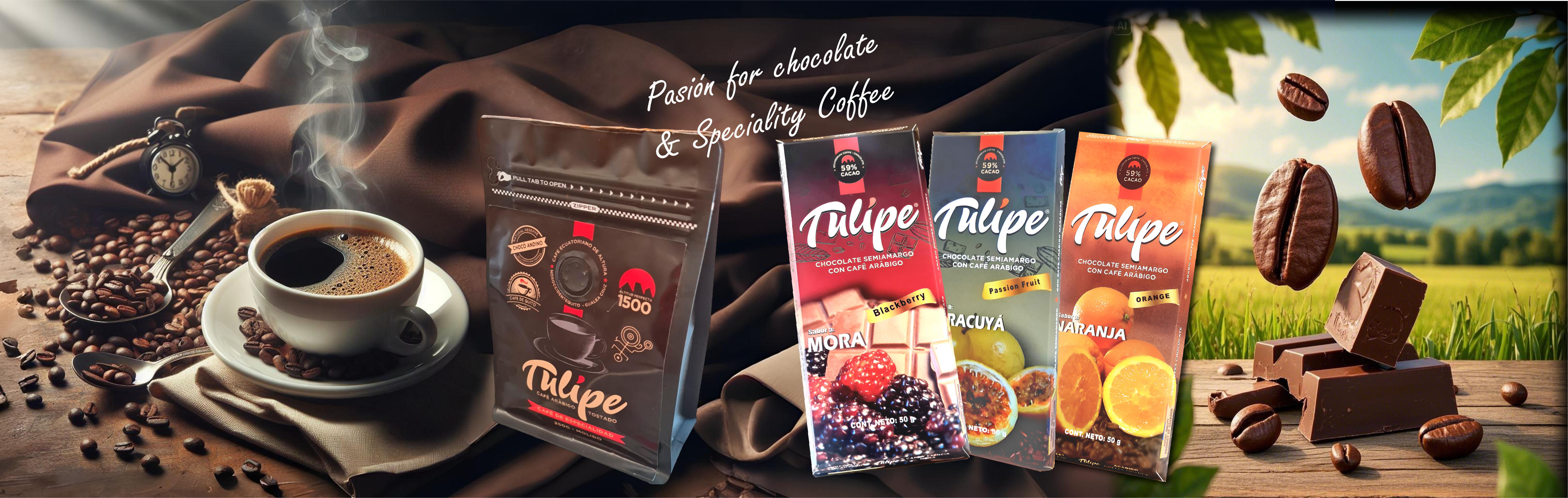Por su privilegiada ubicación geográfica en los 1500 metros sobre el nivel del mar, la zona de Tulipe y el Noroccidente de Quito en Pichincha es propicia para el cultivo de un excelente café arábigo de altura, en sus variedades genéticas Típica y Caturra.